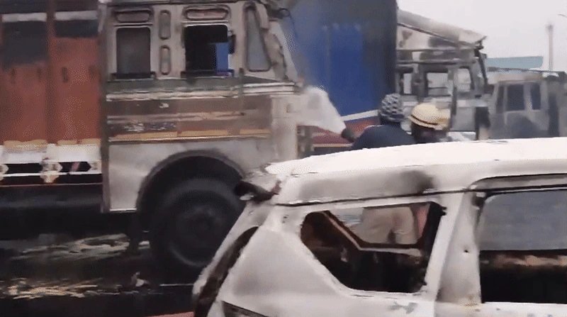 • पुलिस ने बताया कि जो ट्रक दूसरे वाहनों से टकराया था, वह पूरी तरह से रसायनों से भरा हुआ था। जिसके कारण आग ने कई ट्रकों को अपनी चपेट में ले लिया। इस घटना में शामिल ट्रकों की संख्या अभी तक स्पष्ट नहीं है।