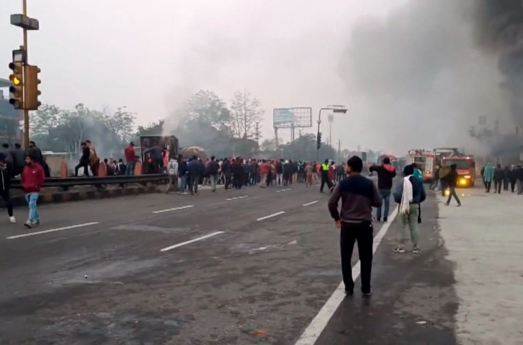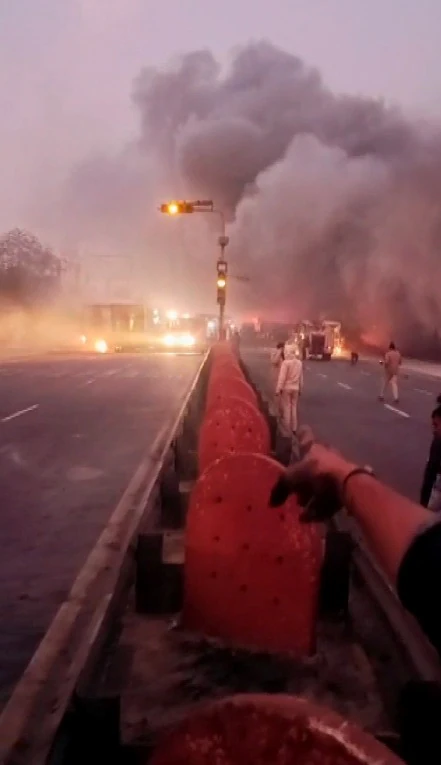 कुछ लोग जल गए हैं, जिन्हें एंबुलेंस के जरिए अस्पताल भेजा गया है।” उन्होंने कहा कि यह घटना पेट्रोल पंप के सामने हुई और फायर इंजन मौके पर मौजूद हैं और आग को नियंत्रित करने की कोशिश कर रहे हैं। गुप्ता ने कहा कि एहतियात के तौर पर, हाईवे पर यातायात रोक दिया गया है।